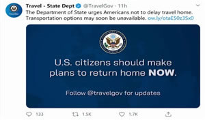 中国人常说,“事出反常必有妖”。很可能美国人想干的这件事是对全球都是极大威胁的事,这件事将使全球各地的美国公民遇到更大的威胁,这将使在国外的安全风险要比在国内的安全风险高很多,否则美国国务院怎么会在230年的历史上破天荒地要将全球的美国公民都撤回到美国本土呢?或许这才是让人细思极恐的事。