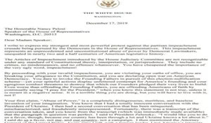 特朗普就弹劾案给议长佩洛西的公开信