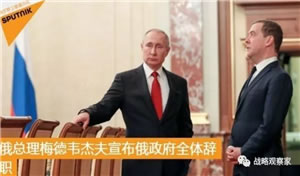1月16日,在预先没有任何征兆的情况下,俄罗斯总理梅德韦杰夫突然宣布政府全体辞职,俄罗斯总统普京也接受了政府的辞职。普京借修改宪法使梅德韦杰夫政府集体辞职,换上了一个新总理米舒斯金,“梅普配”宣告结束。但普京此次对俄罗斯动大手术绝不是用“米普配”代替“梅普配”,而是为打造“普京的长久国家”做铺垫。