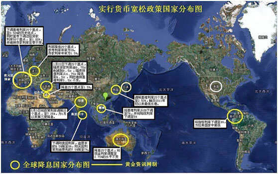 统计显示,2015年年初至3月,开始实行降息(或降准)以及量化宽松(QE)政策的央行依次包括埃及央行、印度央行、秘鲁央行、瑞士央行、丹麦央行(共4次降息)、土耳其央行(共2次降息)、加拿大央行、欧洲央行(QE)、新加坡央行、俄罗斯央行、澳洲央行、中国央行(降准和降息)、瑞典央行、以色列央行。